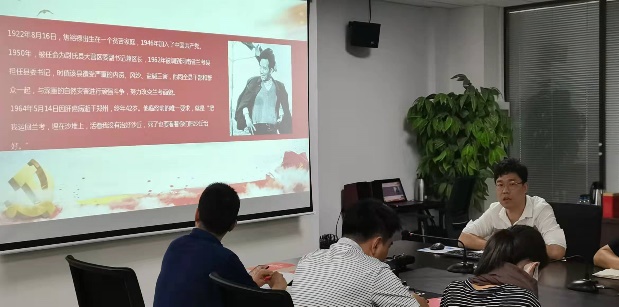 范书记总结了公司上半年党史学习教育的开展情况,结合公司党委的工作指向和要求,就公司党史学习教育第二阶段工作的推进开展提出了几点要求:第一、突出重点专题,进一步推动“七一”重要讲话精神的学习宣传贯彻。重点学习习近平总书记在庆祝中国共产党成立100周年大会上的重要讲话精神,做到全覆盖、深入学、广宣传,赓续红色血脉、传承建党精神,努力做到越学越“厚”、越学越“新”。第二、加强自检自查,配合好党史学习教育校内巡回指导工作。对于党史学习教育的材料要及时整理总结,“三会一课”、党员发展、党组织关系转接等要理清支部“台账”。第三、深化实绩实效,深入开展“我为群众办实事”实践活动。结合“专题组织生活会”的自检自查,及时落实整改,把党员先锋作用的发挥同“办实事”工作深入结合;推进“全国党建标杆院系”的支部案例整理工作。第四、创新方式形式,组织开展好“节日里的党史教育”。利用好“烈士纪念日”、“国庆节”等重大节日,创新、深化党史教育的育人效果;积极开展对“习近平给全国高校黄大年式教师团队代表的回信”精神、上海市委“上海高公司党的建设工作会议”精神和“王红旭同志先进事迹”等的深入学习。