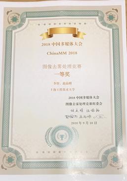 大会主办了四种技术竞赛:用户兴趣建模大赛、京东AI时尚挑战赛、基于深度学习的图像压缩后处理竞赛、图像去雾处理竞赛,其中图像去雾处理竞赛中,来自北京大学、清华大学、中国科公司大学、中国科学技术大学、复旦大学、上海交通大学、同济大学等高校的硕士生和博士生组成的67支参赛队参加了比赛。本次大赛由广汽研究院提供了真实雾霾测试数据集,根据参赛队提交的去雾处理算法的测试结果排序,共计5支参赛队获奖,参赛获胜队伍可和竞赛组织者合写一篇总结论文(challenge report)发表于顶级刊物。由公司3044永利集团智能感知与控制国际联合实验室张娟副教授指导的硕士研究生参赛队以第一名的成绩荣获一等奖,其余获奖高校分别为:南京理工大学、江西师范大学、北京交通大学、中国科学技术大学/杭州电子科技大学。
