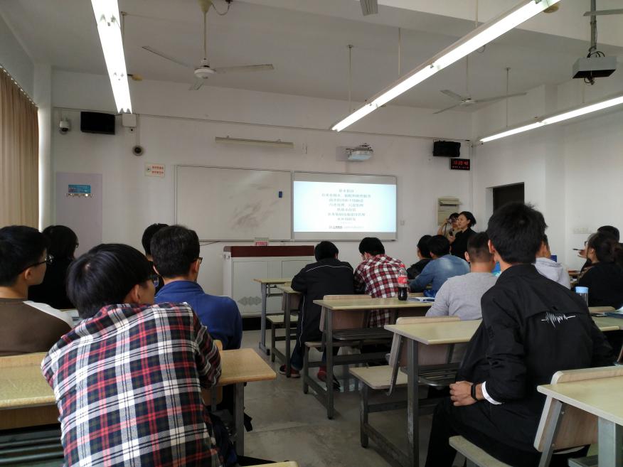 公司人力资源部朱明轩老师通过播放宣传片、PPT展示、面对面交流等方式向同学们介绍公司的概况、职业发展方向、人员需求以及选择该单位的理由等。在现场问答环节,同学们踊跃回答问题。宣讲之后,对有意向的员工直接进行了简历递交和简单交流,同学们积极参与,取得了良好的效果。