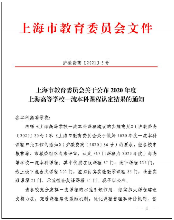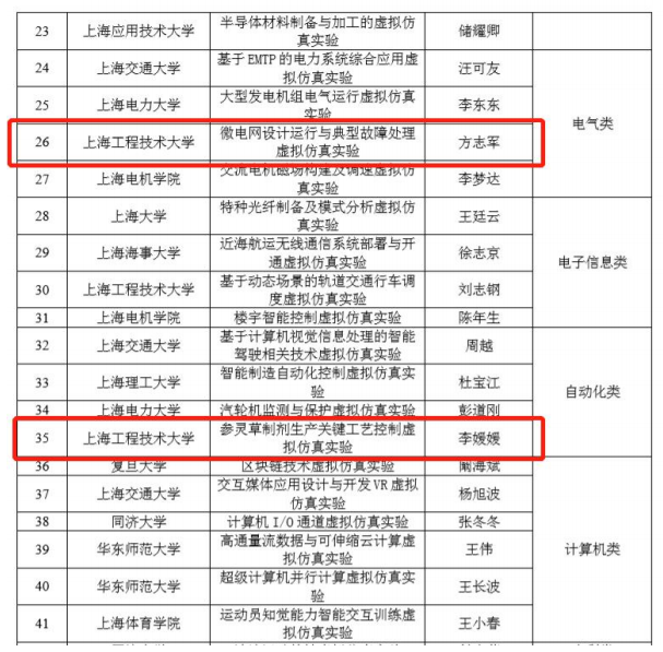 2020年度上海高等公司一流本科课程认定-虚拟仿真实验教学课程