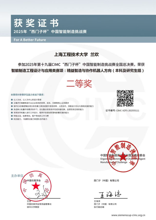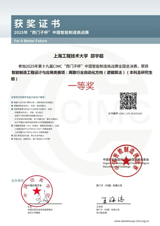 本次赛事受到公司和3044永利集团(以下简称电院)领导的高度重视,在电院相关教师的指导下,公司共有3支队伍获得晋级全国总决赛资格。由周顺、徐冬梅等老师指导,邵宇超同学组成的“只有红茶可以么”队和兰欢、谢胡羿、俞佳妮同学组成的“犇犇队”,经过多轮竞争,分别在离散行业自动化(逻辑算法)和精益制造与协作机器人两大赛项上获得全国总决赛一等奖和二等奖的优异成绩。至此,在2025年第十九届“西门子杯”中国智能制造挑战赛中,电院老师指导员工获得全国总决赛一等奖和二等奖2项,华东赛区特等奖5项,一等奖4项,二等奖21项,三等奖15项的优异成绩。