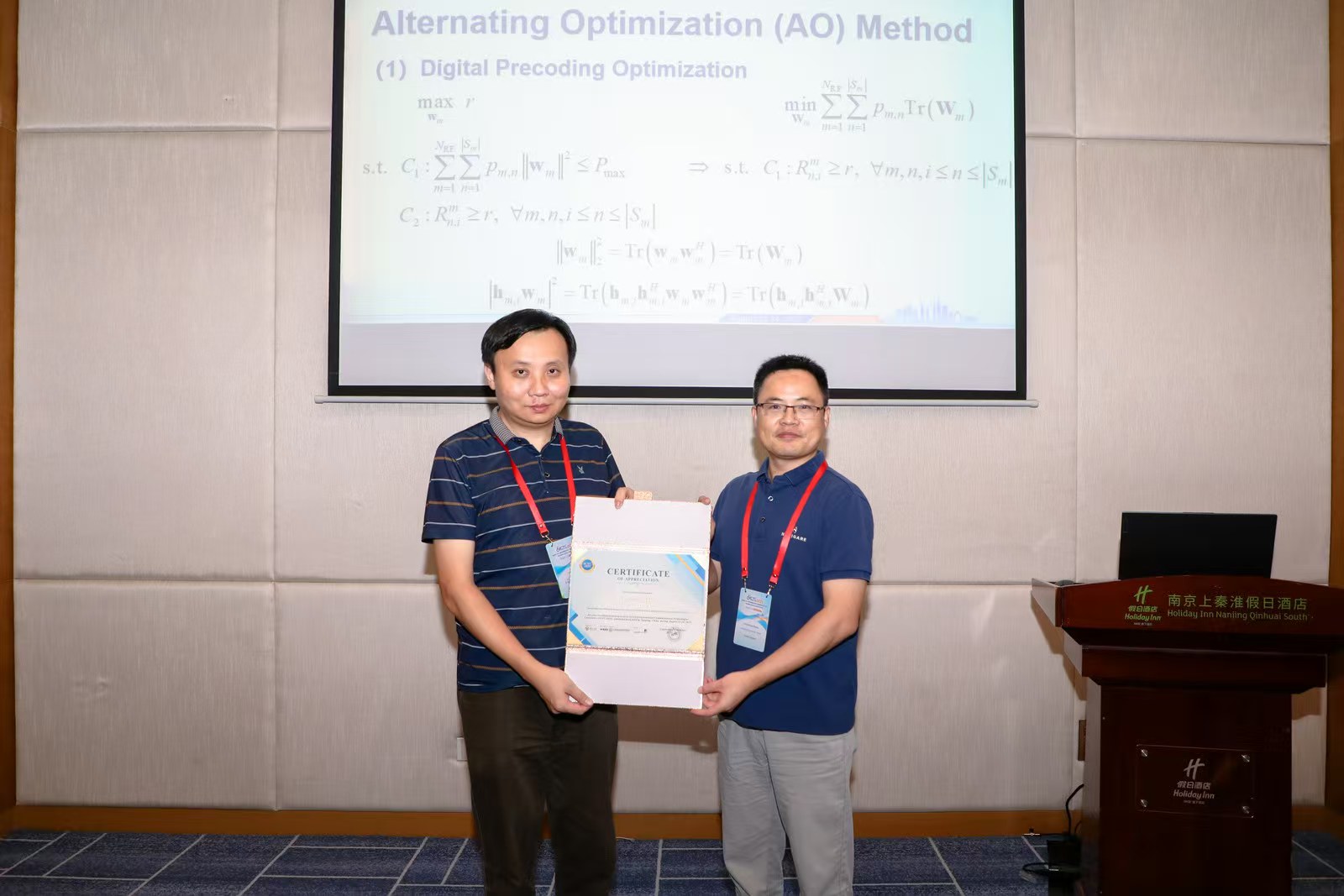 电子信息系的马天鸣副教授应邀担任本次大会的宣传主席(Publicity Chair),负责大会的对外宣传工作以及邀请国内院校从事通信方向的知名学者担任大会的Invited Speaker(先后邀请到了上海海事大学信息工程公司副经理徐艳丽教授、华东师范大学通信与电子信息公司的郭坤研究员以及南京航空航天大学电子信息工程公司的冯斯梦副研究员),并于08.23前往南京参会,亲自做了Invited Speech,同时与来自南京大学、华中科技大学、山东大学、华东师范大学、西安电子科技大学、南京航空航天大学、重庆邮电大学、鹏程实验室等高校的师生进行广泛交流和学术探讨。