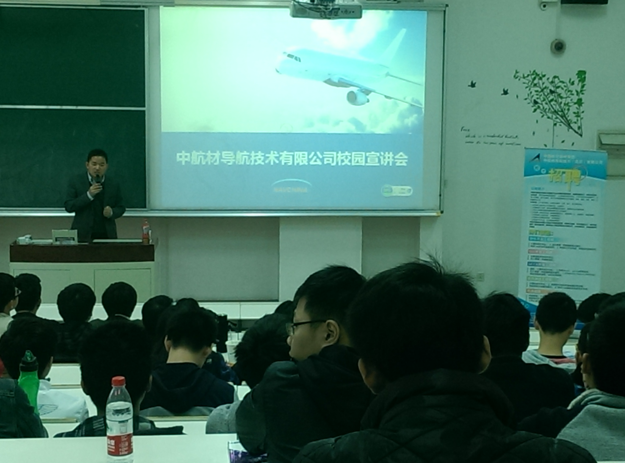 1117日下午,中航材导航技术有限公司的开发部陈经理在教学楼C219召开宣讲会。