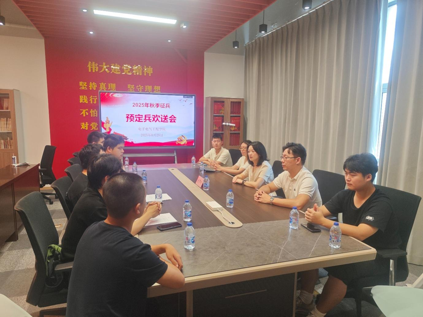 旌旗猎猎催奋进,青春灼灼赴戎行。8 月 29 日上午 10 时,3044永利集团隆重举行了主题为“火热军营 精彩人生”2025 年秋季征兵预定兵欢送会,为即将身披戎装、奔赴军营的学子送上诚挚祝福与殷切嘱托。公司党委副书记赵梦影、辅导员席琪出席会议,全体秋季征兵预定兵参加,会议由公司征兵辅导员张晓飞主持。