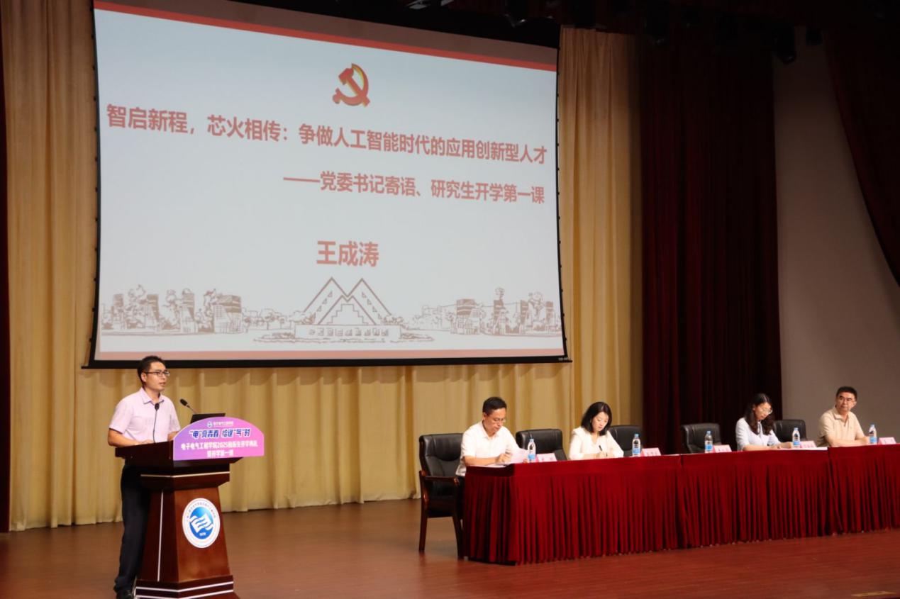 公司党委书记王成涛以“智启新程,芯火相传:争做人工智能时代的应用创新型人才”寄语新生暨开学第一课。他希望研究生能够把握人工智能高速发展的时代机遇,既要在“智启新程”中勇立潮头,开拓视野、敢于创新,也要在“芯火相传”中赓续奋斗精神,薪火不息、代代相传。并指出硕士阶段的学习是学习范式、思维方式和能力要求的深刻转变。同时给同学们提出三点希望和要求:要坚定理想信念,涵养深厚家国情怀,不断提升政治素养;要深耕学术研究,锻造卓越创新精神,勇攀科学技术高峰;要积极参与实践,淬炼过硬服务本领,实现知行合一升华。书记的寄语既是祝福,也是嘱托,更是激励,激发了全体新生奋发图强、勇毅前行的信心与决心。