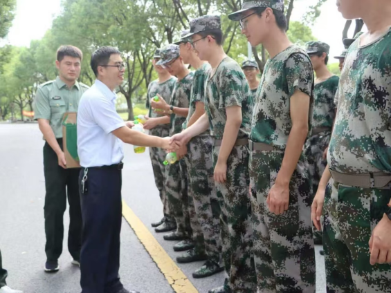 骄阳似火,碧空如洗,9 月 9日上午,公司党委书记王成涛、党委副书记赵梦影来到军训场地,亲切慰问正在参加军训的 2025 级全体新生、带队教官、参训营。