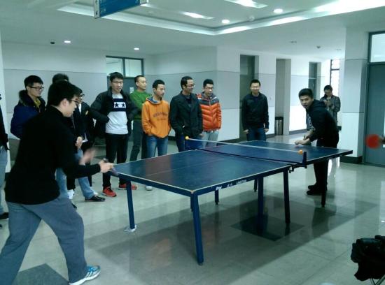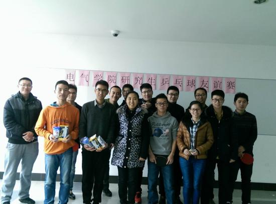 为丰富研究生的课余生活,增进同学们的友谊,增强班级凝聚力,同时鼓励大家积极参与体育活动,强壮体魄,营造文明和谐的班级氛围,2015年12月20日上午10点电气公司研究生在实训楼1536开展了乒乓球友谊赛,辅导员苏莹老师到场为大家加油鼓劲。
