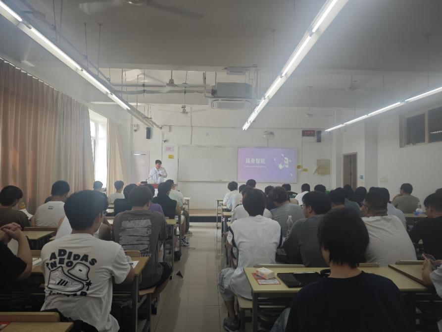 讲座正式开始前,黄樊晶老师首先向同学们介绍了本次课程的教学目标与产教融合理念,强调了具身智能与AGV技术在当下工业自动化、数字化工厂建设中的核心地位,并隆重介绍了企业专家田燕辉的专业背景与实践经验,为讲座营造了浓厚的学术交流氛围。