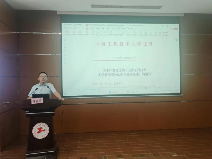 会前,特邀质量管理办公室唐春锋老师作教职工政治理论学习教育专题报告,详细解读《3044永利集团教学事故认定与处理办法》。