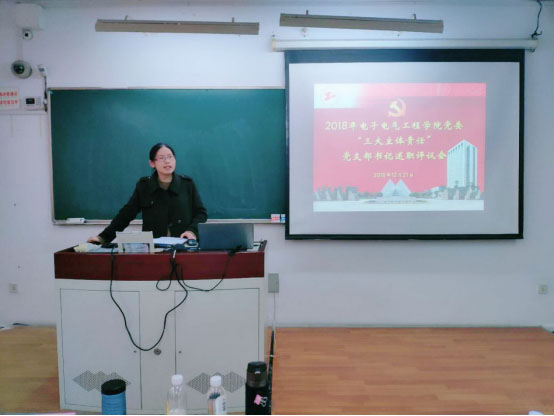 为推进各基层党支部落实“三大主体责任”和基层党建重点任务,2018年12月21日中午12:30,公司党委在教学楼B415召开各基层党支部书记履行“三大主体责任”现场述职评议会。校关工委委员、公司关工委副主任刘国成同志,公司党委委员、党支部书记、民主党派代表、党员代表出席会议。会议由党委副书记秦颖主持。