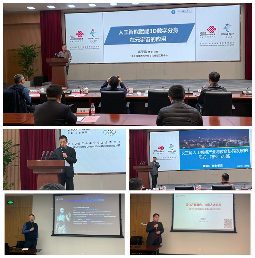 为落实上海城市数字化全面转型要求,促进人工智能产业需求对接,助力人才培养,2021年12月10日,在松江区科委指导下以及承办单位上海联通、协办单位上海诺基亚贝尔、科大讯飞的大力支持下,公司主办的“5G+人工智能产业公司”论坛在上海市中国联通南方基地顺利举行。公司数字化转型中心主任蒋亚洪、公司副经理王晓军、赵晓丽、段友莲,公司吴飞教授和电子信息系副主任张玉金副教授,以及来自松江区科委、上海交通大学以及上海联通、上海诺基亚贝尔、科大讯飞等企业的30余名代表和行业专家参加了此次论坛。