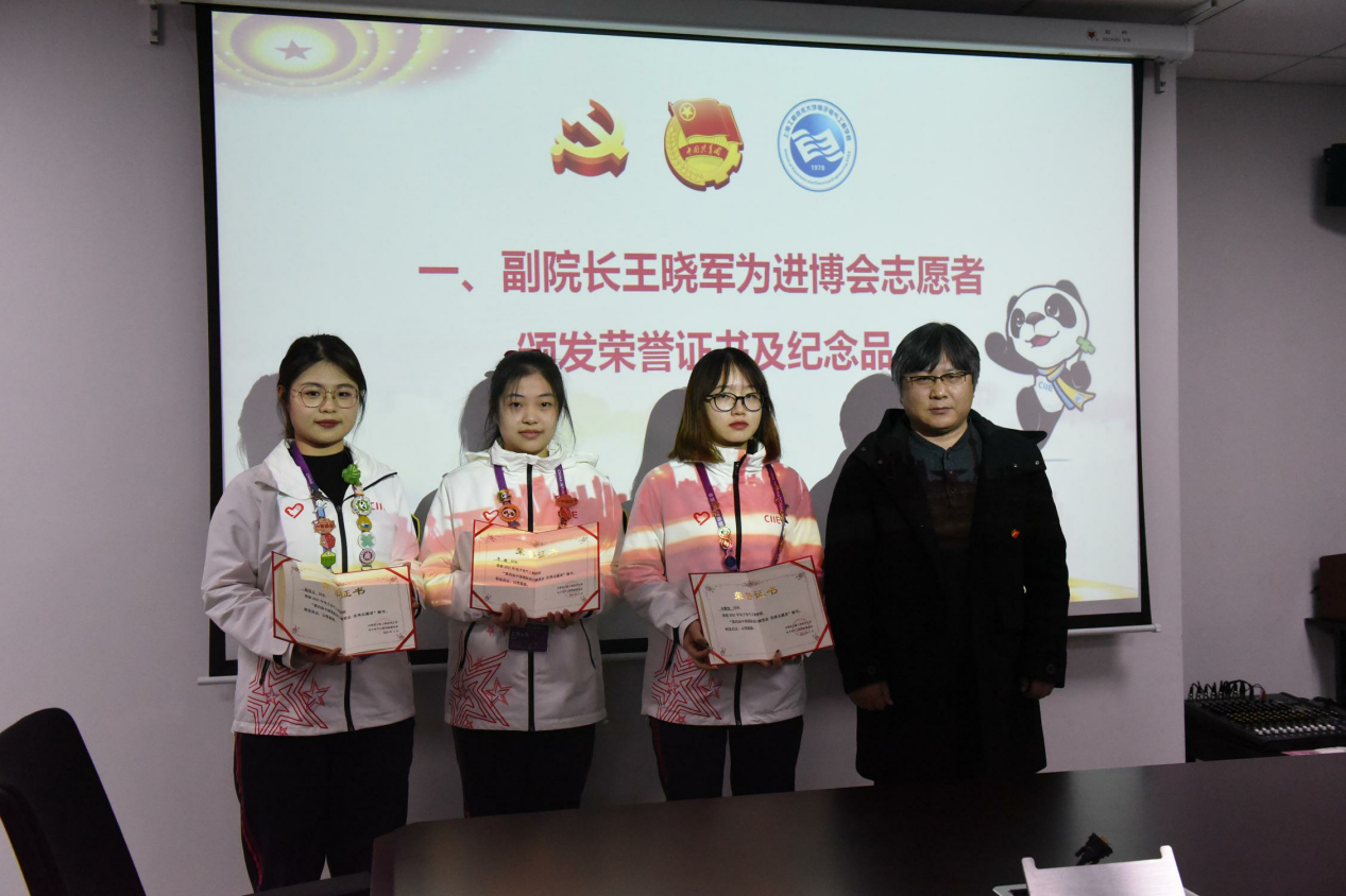 此次进博会,来自公司的3名志愿者“小叶子”在会场提供了热情周到的服务,为进博会的成功举办提供了支持与保障,以实际行动诠释了“奉献、友爱、互助、进步”的志愿者精神,展现了当代老员工服务社会的担当与风姿。对此公司对他们作出衷心的表彰。王晓军副经理为他们颁发了荣誉证书及公司纪念品。