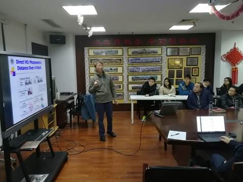 黄正能教授从SLAM技术说起,并结合他目前所做的课题,详细介绍了SLAM技术在相关领域中的实际应用,并分别介绍了Visual Odometry、Visual SLAM目前的技术现状,发展趋势等。其后结合自己的课题,重点阐述了移动相机下的二维目标检测(2D Object Tracking in Moving Cameras)、三位坐标下的目标跟踪(Object Tracking in 3D Coordinates)、人体姿态估计(Human Pose Estimation)等技术,让大家对SLAM技术有了一个全新的认识。教授在讲座过程中运用幽默的话语,阐述了在课题中遇到的难题,并对提出解决问题方法的过程进行了重点说明,告诫员工做学术应该着眼思考解决问题方法的合理性。同时,就传统方法和当下火热的深度学习技术分别提出了自己的看法。最后公司教师与在读硕士研究生积极发问,与黄教授进行了相关问题的探讨。