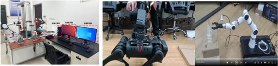 能够完成移动机器人到指定位置巡检、机械臂完成取样等作业任务,移动本体可以是履带式、轮式、机器狗等都可以。简单作业任务自主完成,复杂作业任务远程遥控操作完成。