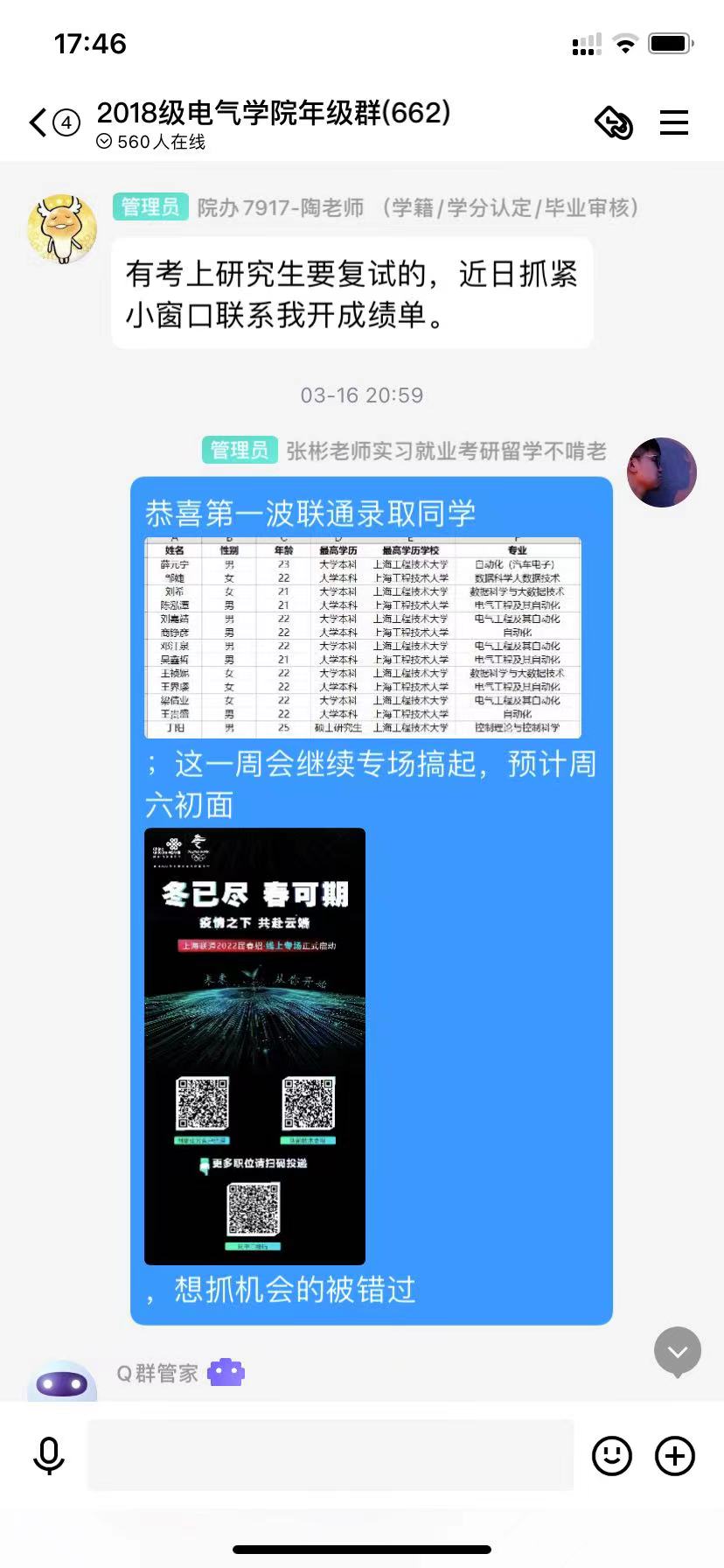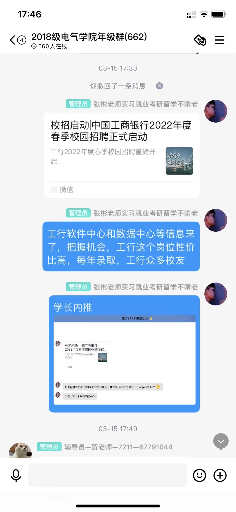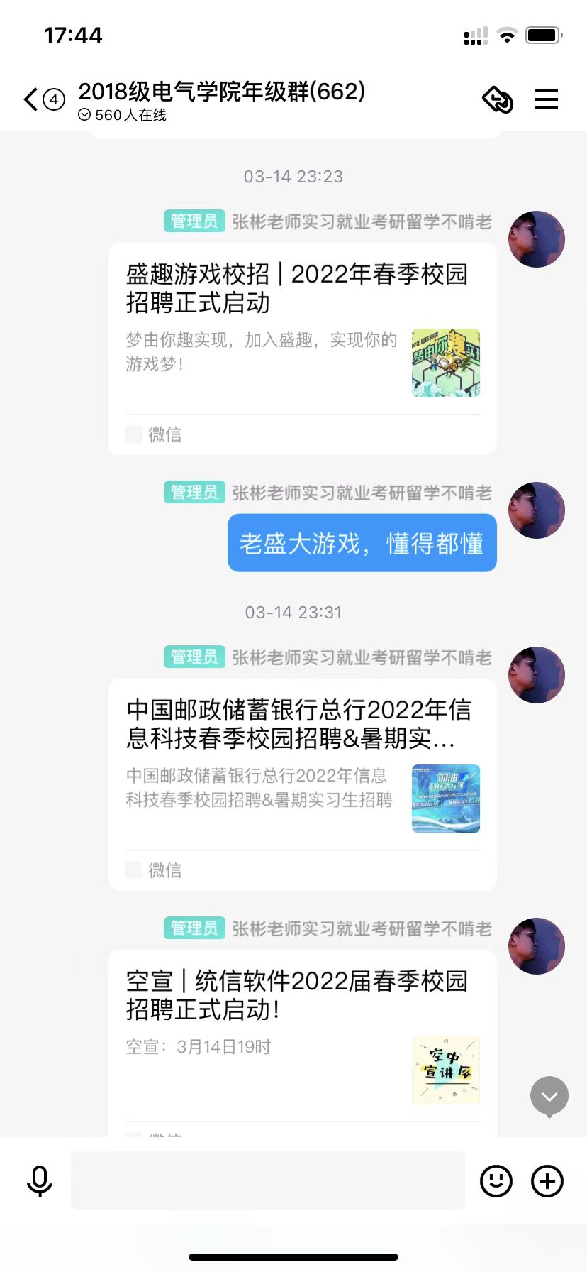 2022年3月,疫情背景下公司持续启动“云招聘”,使求职招聘、挖潜拓岗走向“云端”,奋力抢抓用好就业机遇,公司多方联系优质公司为毕业生就业搭建了更宽广、便捷的桥梁,及时组织线上招聘宣讲会,为企业和毕业生提供更便捷的线上就业宣讲指导和签约服务。截止当前,公司已经线上举办6次专业宣讲会,覆盖全部专业,确保每周年级群推送不少于20条招聘信息。