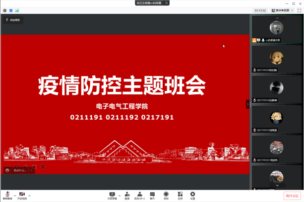 近日,为严格落实上级关于疫情防控的部署和要求,进一步做好公司准封闭期间疫情防控工作,确保员工身体健康和生命安全,辅导员利用线上的形式,召开了2019级本科生防疫工作主题班会。