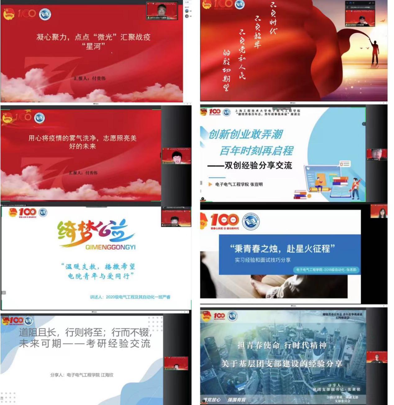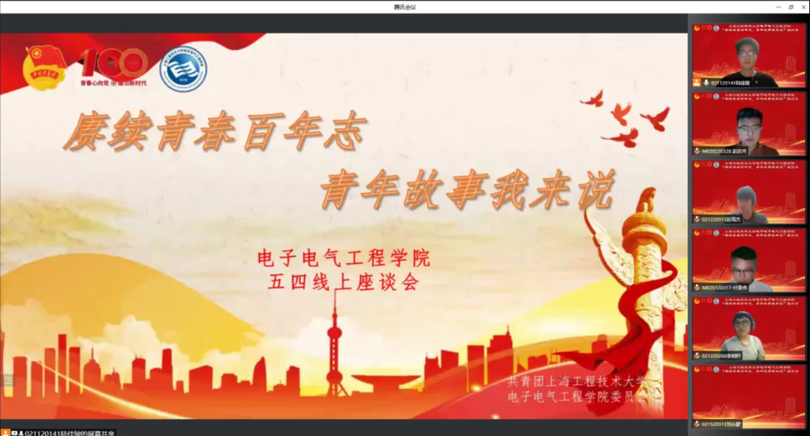2022年我们喜迎二十大的胜利召开,庆祝中国共青团成立100周年。秉承着不忘初心、牢记使命的信念,为展现程园学子的风华正茂、书生意气,电子电气工程公司团委于5月4日晚举办“赓续青春百年志,青年故事我来说”线上座谈会。旨在带领全院青年勇担时代使命,传承百年红色基因,续写未来新篇章。