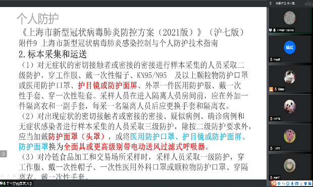 为引导大家更好地开展疫情防控和进一步保障支部党员在开展疫情防控志愿服务工作中的安全,王宇嘉老师将自己在专业培训中所学的防疫知识进行了详细的讲解、传授。