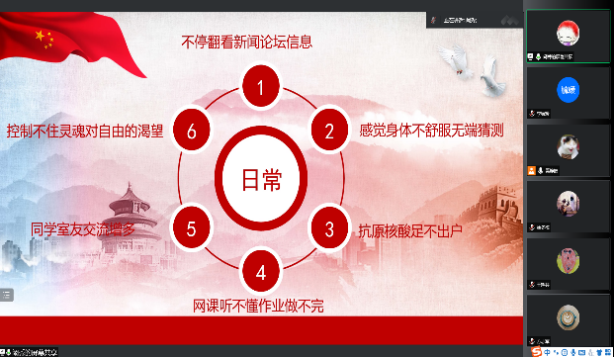 会议开始,奚老师首先详细传达了5月5日习近平总书记在中共中央政治局常务委员会上的重要讲话精神,强调目前疫情的最终走向还存在很大不确定性,疫情防控工作正处于“逆水行舟、不进则退”的关键时期和吃劲阶段,我们一定要把思想和行动统一到党中央决策部署上来,自觉在思想上政治上行动上同党中央保持高度一致,克服麻痹思想、厌战情绪、侥幸心理、松劲心态,坚决落实党中央决策部署,充分发扬斗争精神,坚决筑牢疫情防控屏障,坚决巩固住来之不易的疫情防控成果。接着,奚老师带领大家学习了5月5日市委常委扩大会议上李强书记的讲话精神,要求大家进一步行动起来,共同担负起抗击疫情、攻坚克难的重大责任。另外,奚老师还带领大家一起学习了“动态清零与零感染”、“社会面清零”、“四应四尽”等热门词汇。