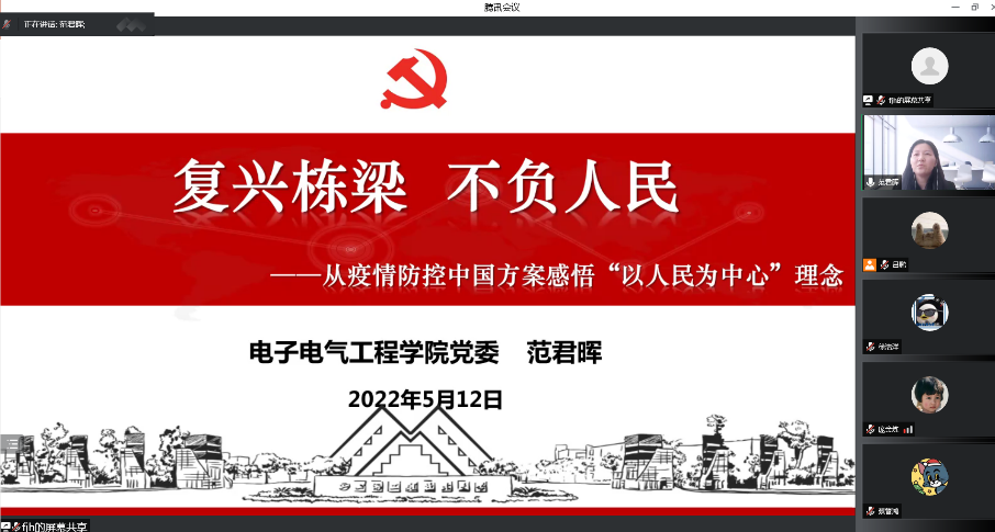 公司党委书记范君晖以“复兴栋梁 不负人民—从疫情防控中国方案感悟‘以人民为中心’理念”为题给毕业生党员上了微党课,为毕业生党员介绍国家、上海市、公司、公司如何以实际行动践行“人民至上,生命至上”的中国防疫方案理念,希望同学们争当伟大理想的追梦人,争做伟大事业的生力军,立足岗位,不负人民。