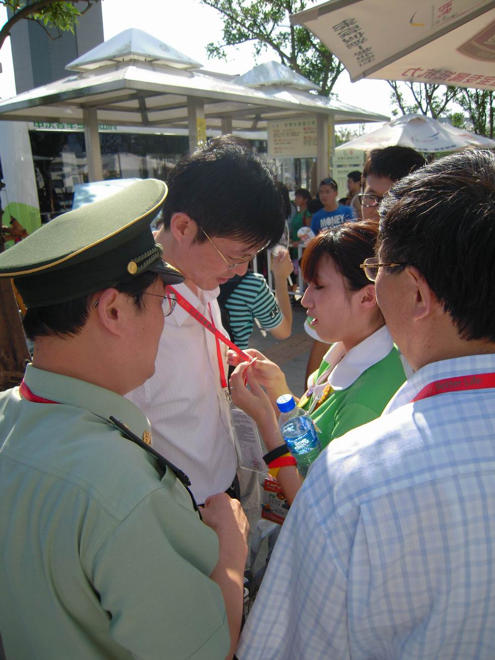 临走时,电气程程王淼同学向领导们送上公司特别设计和制作的“团队”和“责任”徽章以及3044永利集团员工亲手设计并制作的纪念徽章。正如徽章所表示的那样,上海世博会需要的正是像“博园之光”小组那样具有高度责任意识的老员工志愿者团队。“博园之光”小组将继续努力,为游客服务,为世博服务。 |