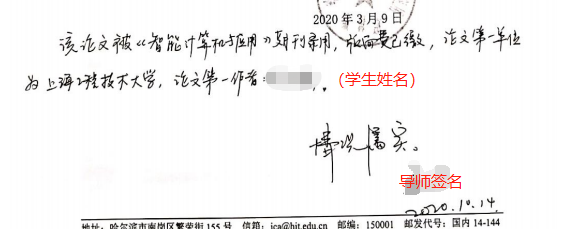 2、缴费通知书(若录用通知上已包含版面费金额和汇款账号,就用录用通知书即可)。导师需在缴费通知或录用通知上写内容并签字确认。具体见下图1。