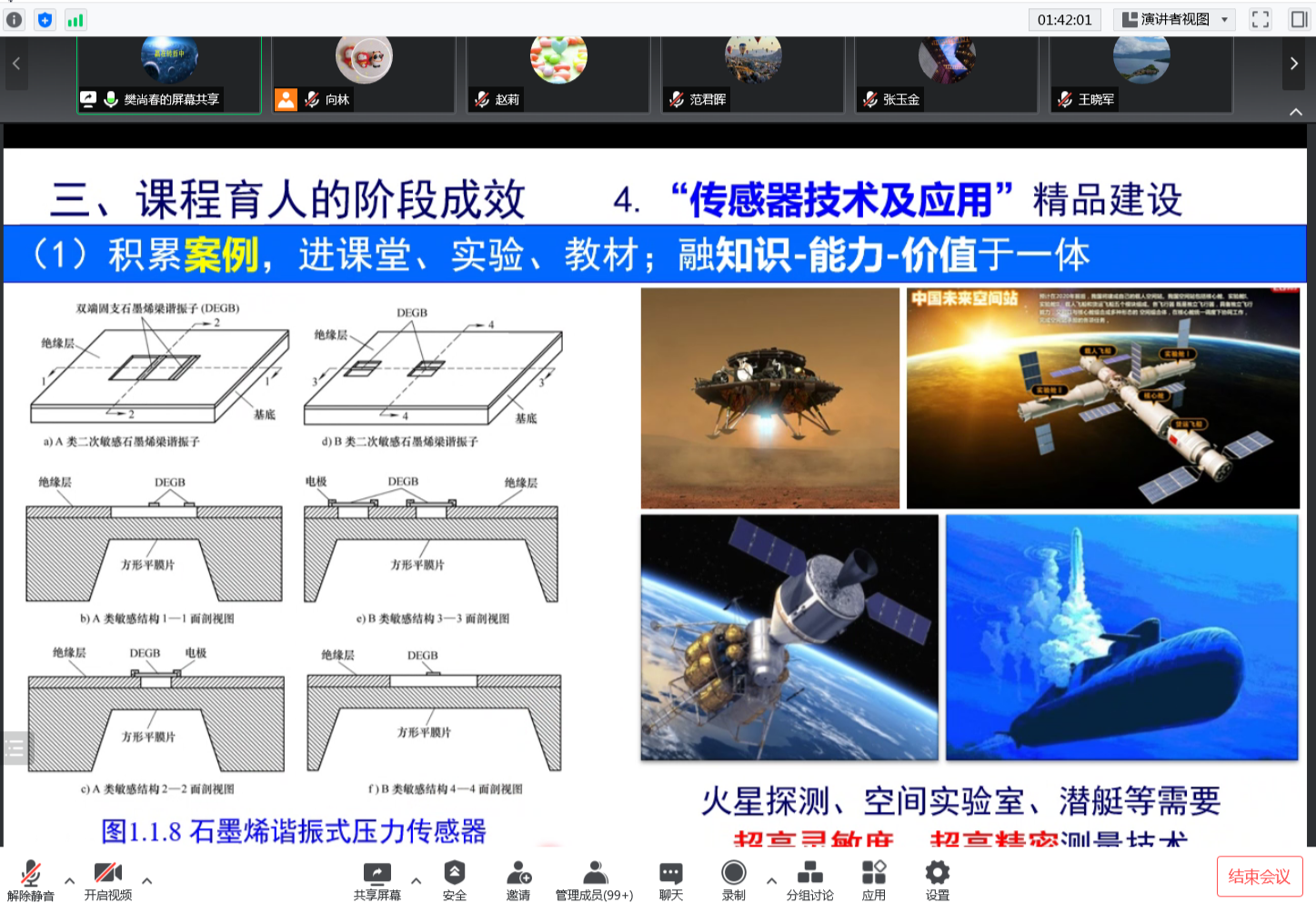 樊尚春教授结合北京航空航天大学的专业发展历程和自己成长过程中遇到的大先生,介绍了从教40多年为学为师的感悟。樊教授的报告将大先生总结成几个关键词:爱国、创新和奉献,并进一步和学科专业相结合,升华为“心怀祖国、勇于创新、甘于奉献”的陀螺精神,讲述了在学术上不断创新、精神上永恒传承的北航人故事。樊教授在报告中还详细介绍了《传感器技术及应用》课程建设的过程,总结凝练成“一传四感”的课程思政工作方法和“三传三感”团队建设方法,鼓励老师坚持立德树人,研究教学,献身教育,成长为“四有好老师”。