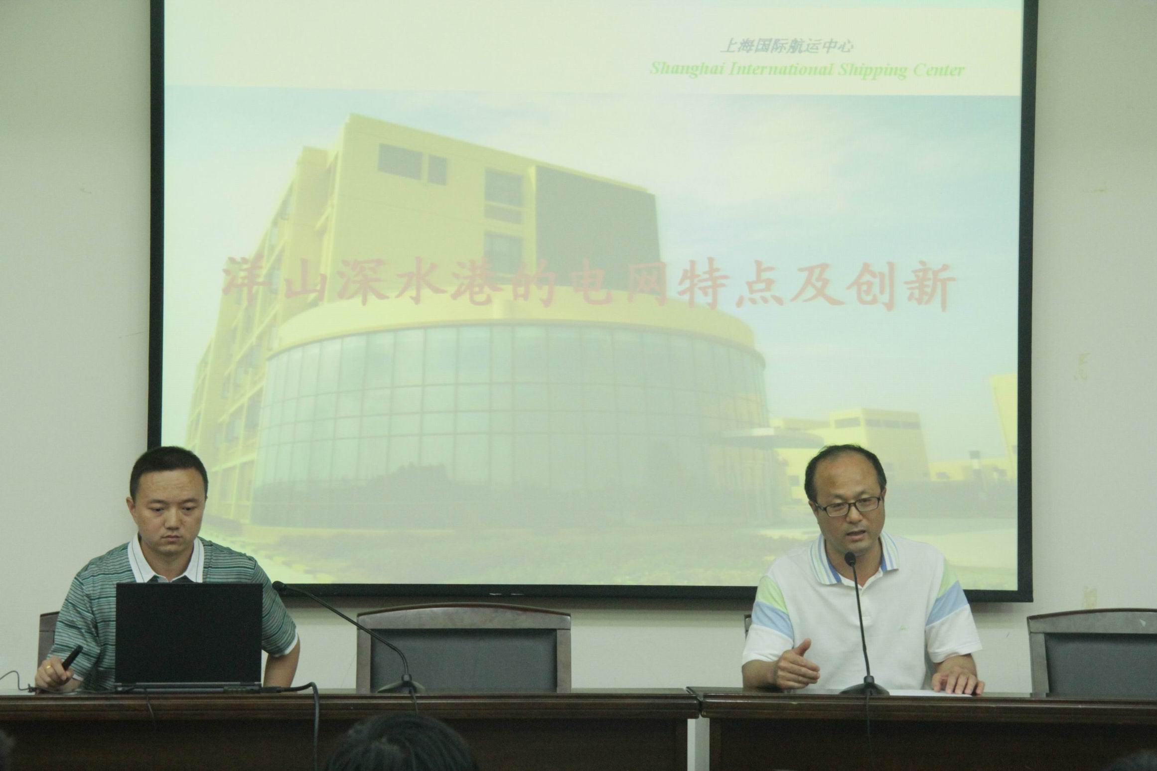在此次讲座中,罗副总工首先介绍同盛公司的状况,指出同盛电力有限公司顺应洋山深水港工程建设而建立,为深水大港提供安全快捷的电力支撑和优质高效的能源服务保障。然后介绍了其公司的重点工程——洋山深水港区的配电和东海大桥里电缆铺设。最后,他就应届毕业生到企业工作会碰到的情况以及如何解决做了具体讲述。同时,他还讲了自己的工作经历,并积极与同学们互动,这让还未走出校门的同学感觉耳目一新。