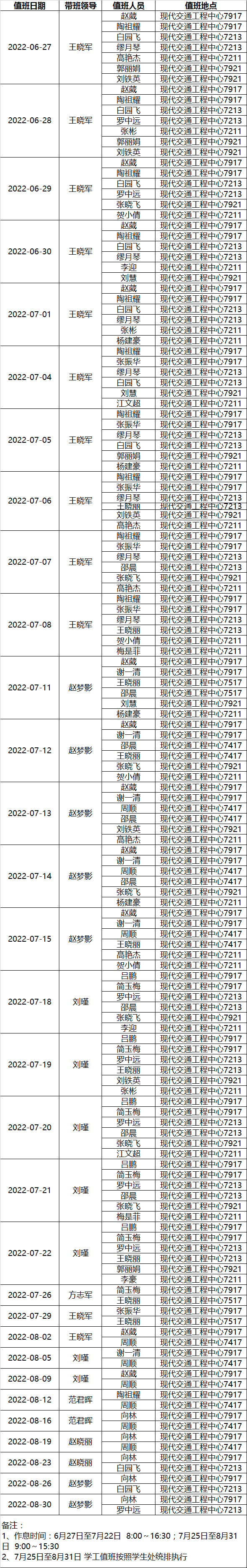 2022暑期3044永利集团值班安排