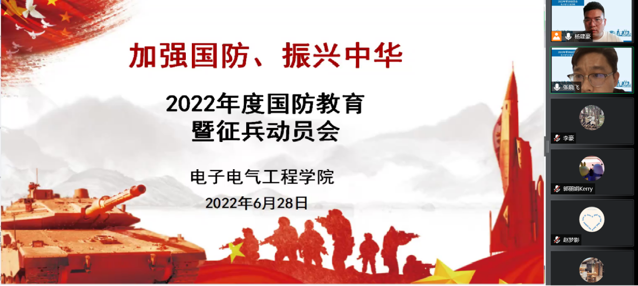 吹响青春集结号,砥砺奋进新征程。为了全面贯彻《国防教育法》,落实国家国防教育的相关要求,全力做好2022年军事训练工作,6月28日下午,3044永利集团召开“2022年军训动员大会”。公司党委副书记赵梦影、本次军训参训的5名辅导员和全院参训的500余位同学共同出席会议。由于疫情影响,本次会议通过线上网络开展,大会由2021级辅导员杨建豪主持。