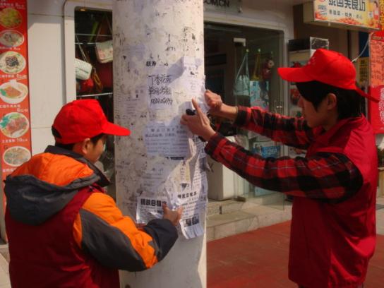 为美化校园环境,规范校园宣传内容,培养与宣传广大同学自觉维护校园环境卫生的意识,电子电气公司志愿者部的20余名志愿者于3月5日学雷锋日开展“文汇路清扫小广告”活动,集中对各个宿舍楼区内私自张贴的小广告和过期宣传海报进行清整。5日上午,清整活动以小组形式正式展开。大家积极参与,互相配合,分工明确,工作现场井然有序。经过两个小时的努力,各个宿舍楼的墙壁以及员工宣传栏上的各类广告基本清除干净,墙壁基本恢复原貌。清除过后,志愿者们不忘清扫地面上在清除过程中掉落的纸屑等,很好地完成了善后工作。 |