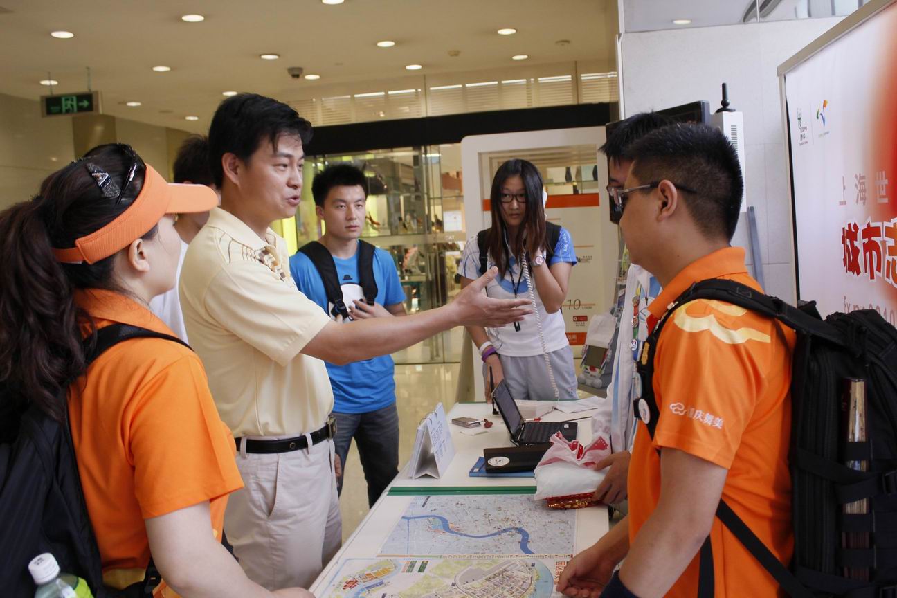 8月16号8:00,公司党总支副书记王东阳老师、辅导员江文超老师在公司志愿者工作分站员工干部李春辉、魏然同学陪同下走访了位于黄浦区南京路至外滩的所有世博志愿者城市服务站,为志愿者们打气加油。 顶着烈日,