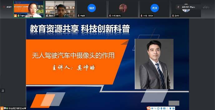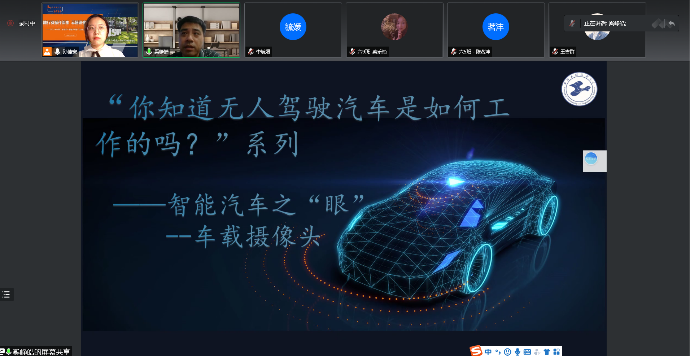 首先,上外松外教导主任孙佳宏老师对本次活动的背景、意义和主要内容进行了介绍。然后,自动化系党支部书记奚峥皓老师为大家带来了 “无人驾驶汽车中摄像头的作用”主题讲座,从车载摄像头的作用、工作原理、种类到无人驾驶汽车的发展概况和发展前景,奚老师生动讲解了智能汽车之“眼”及智能汽车的情况,并跟六年级同学进行了互动,同学们表示收获满满。最后,孙佳宏老师对本次活动进行了总结。