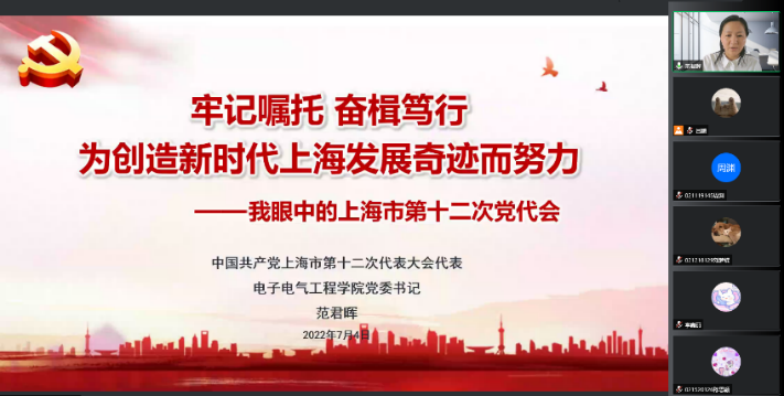 7月4日下午,公司党委书记范君晖通过线上形式,以亲历者的视角,从大会召开的基本情况、我眼中的党代会报告关键词和对几个问题的感悟等三个方面为公司员工党员、入党积极分子等讲了一场《牢记嘱托 奋楫笃行 为创造新时代上海发展奇迹而努力》的精彩党课。