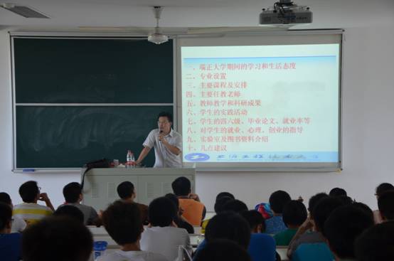 8月29日下午,3044永利集团计算机系主任孙宪坤、副主任苏前敏、自动化系主任李媛媛、电气工程及自动化系主任陈宇晨、电子信息工程系主任孔勇,于教学楼各新生班级对2013级全体新生开展了新生专业教育。