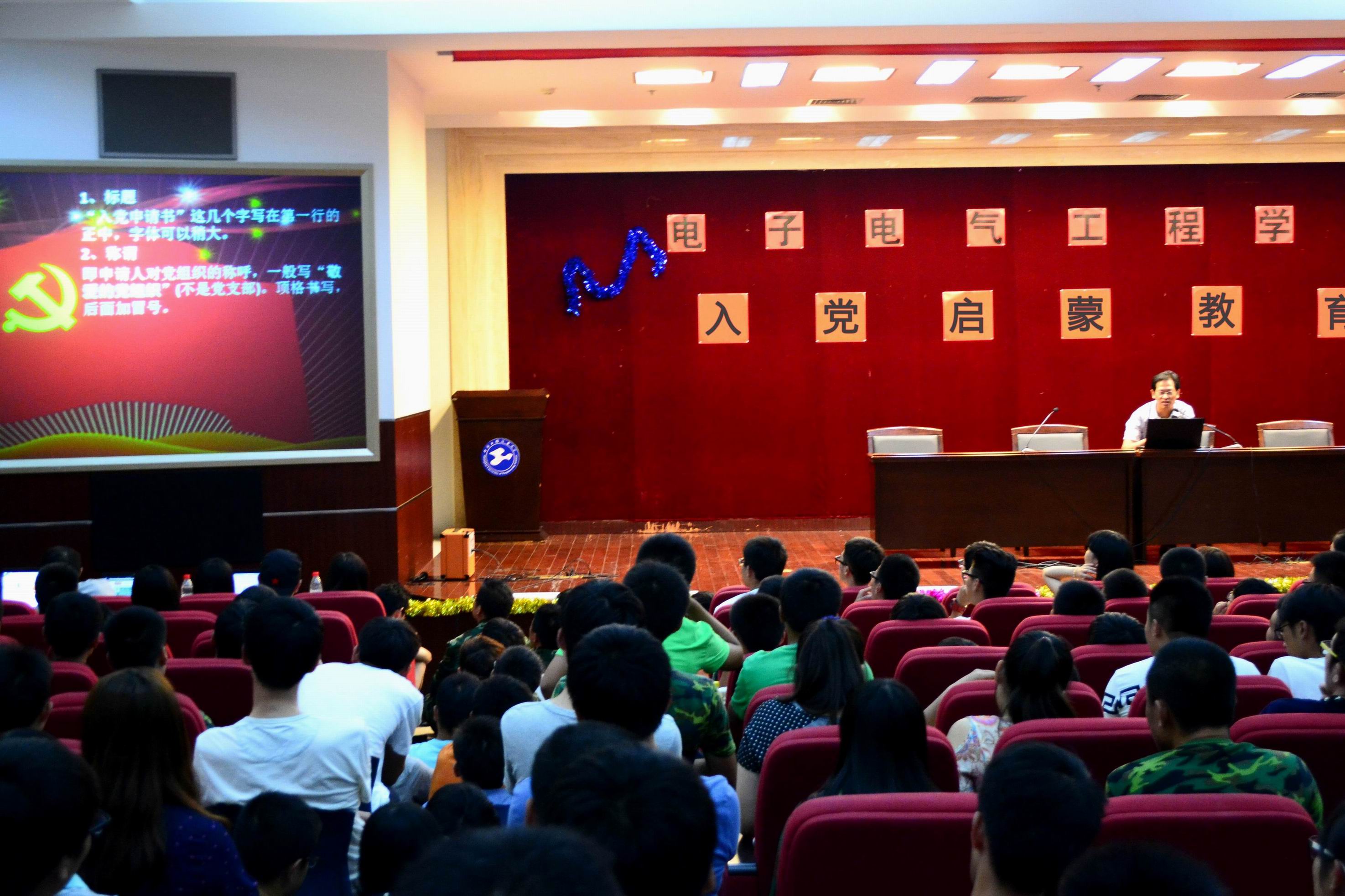 秦颖老师首先介绍了公司员工党支部的大致情况(本科生党支部5个,研究生党支部2个),包括各个员工党支部的人员构成,支部书记以及各支部以往取得的显著成绩等。随后,秦颖老师重点从两个方面对新生进行了入党启蒙教育:一方面,什么是正确的入党动机,及树立正确入党动机的途径;另一方面、如何端正入党态度,以实际行动积极争取入党。秦老师分析了当前社会形势下存在的几种错误的入党动机,提出要摒除一切不正确或不成熟的入党心理,通过不断学习党的基本理论知识,并积极实践,从而提高自我认识,端正入党动机。同时她也提出,除了要有正确的入党动机外,还必须有正确的入党态度,要勇敢的表达入党愿望,从自身做起,积极发挥带头作用,并且再次强调要加强学习,提高理论修养。