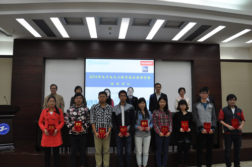 公司党委茅蕾书记在会上宣布了2014年益驰奖学金获奖同学名单,夏则才总监宣布了2014年倍福奖学金获奖名单。伴随真鼓舞人心的音乐,领导们向获奖同学颁发获奖证书。获得一等奖的聂善坤和董淼同学代表获奖同学感谢倍福公司对公司产学合作和科创项目的支持,同时也感谢老师对他们的辛勤辅导和同学们的合作支持,并表示要更加努力,取得更好的成绩。