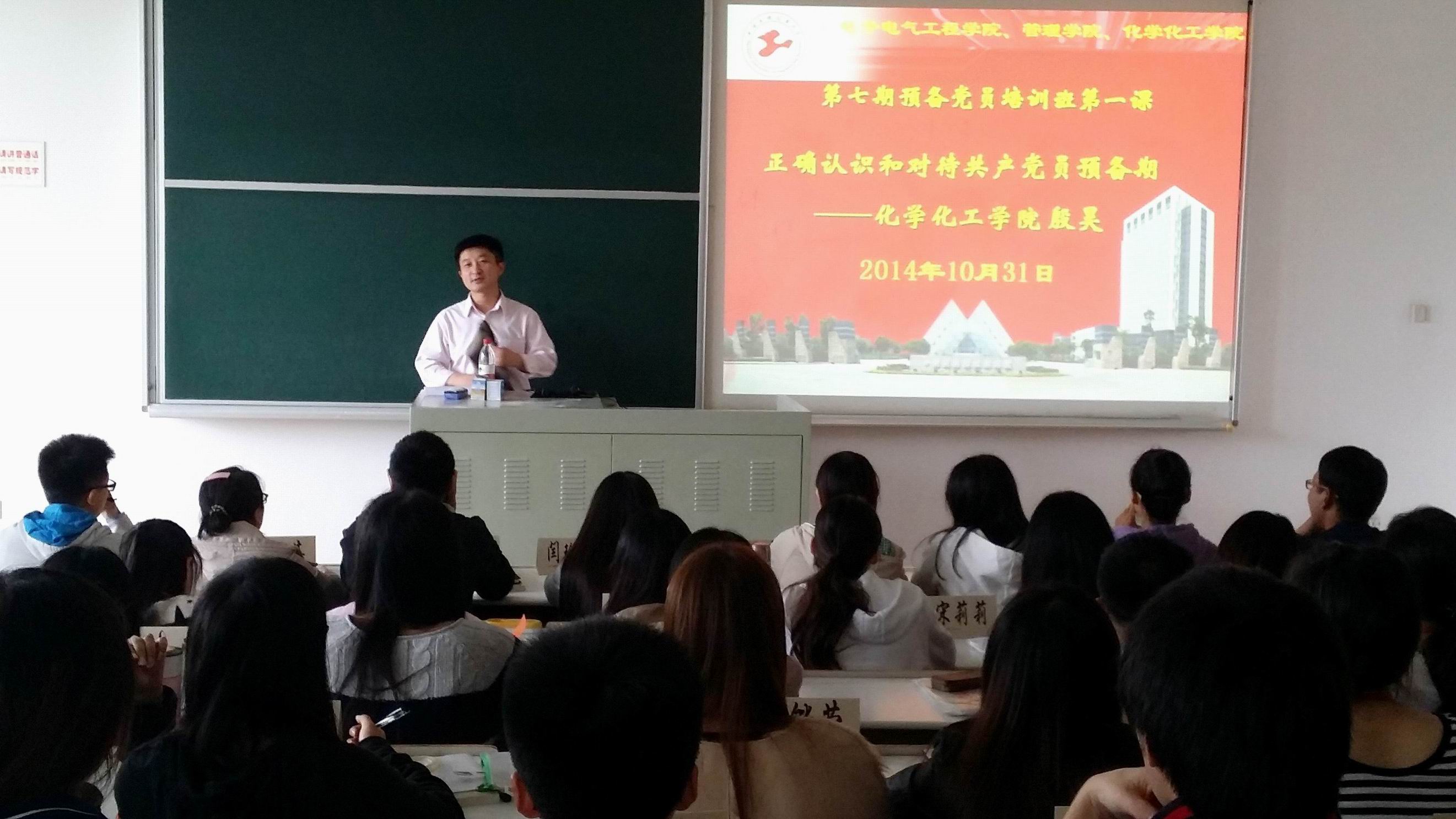 10月31日下午,3044永利集团第七期预备党员培训班第一课在教学楼F210开讲,化学化工公司殷昊老师作了“正确认识和对待共产党员预备期”的专题讲座,来自3044永利集团、化学化工公司和管理公司三个公司的全体预备党员聆听了讲座。
