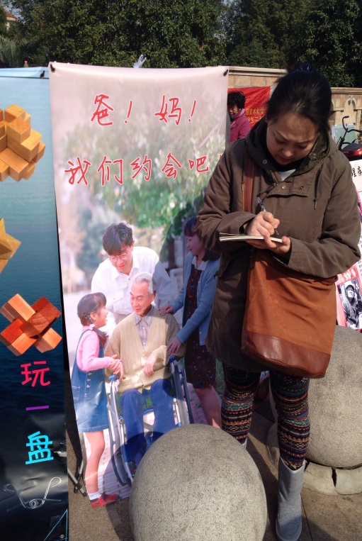 调查显示,老年人90%以上的身体疾病都能通过语言或肢体表现出来,而80%的心理问题却往往不被察觉。此次支部活动的目的就是提醒家有老人的子女,不要只关心老人的身体健康,而忽略了年迈老人的心理问题。系列活动包含四个子活动:“老年人常见心理疾病宣传”活动,通过展板宣传老年人常见心理疾病,预防和治疗的措施,让子女意识到在维持父母心理健康过程中自己需要做些什么;“爸妈,我们约会吧!”活动,填张明信片,写上和父母约会的时间和内容,由填写人自己或委托支部党员交到填写人父母手中。以此号召年轻子女不能只惦记工作和应酬,应多留在家中陪伴年迈父母;“让我陪您玩一局”活动,现场和社区老人进行互动,陪老人下象棋、跳棋、五子棋,解孔明锁和解环扣;“让我陪您唠一唠”活动,以聊天的形式让老人填写一份调查问卷,深入了解老年人的想法、宿愿和需求。
