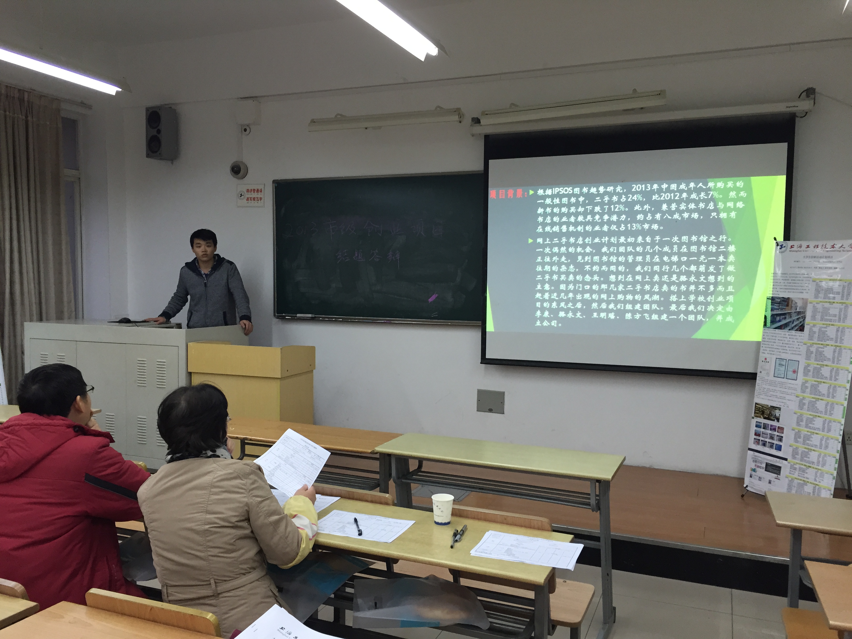 3044永利集团的创业工作一直位列公司前列,在公司精心培育下,每年都有多位同学自主创业注册公司。12月16日下午,公司在教学楼B103教室召开2013市级创业训练项目结题答辩会,卓郑安副教授、刘瑾副教授、黄润才副教授作为评审老师,给予参与创业项目同学们宝贵的意见。“青年设计师之家”、“松江大学城网上二手书店”等八个创业训练项目参与答辩。