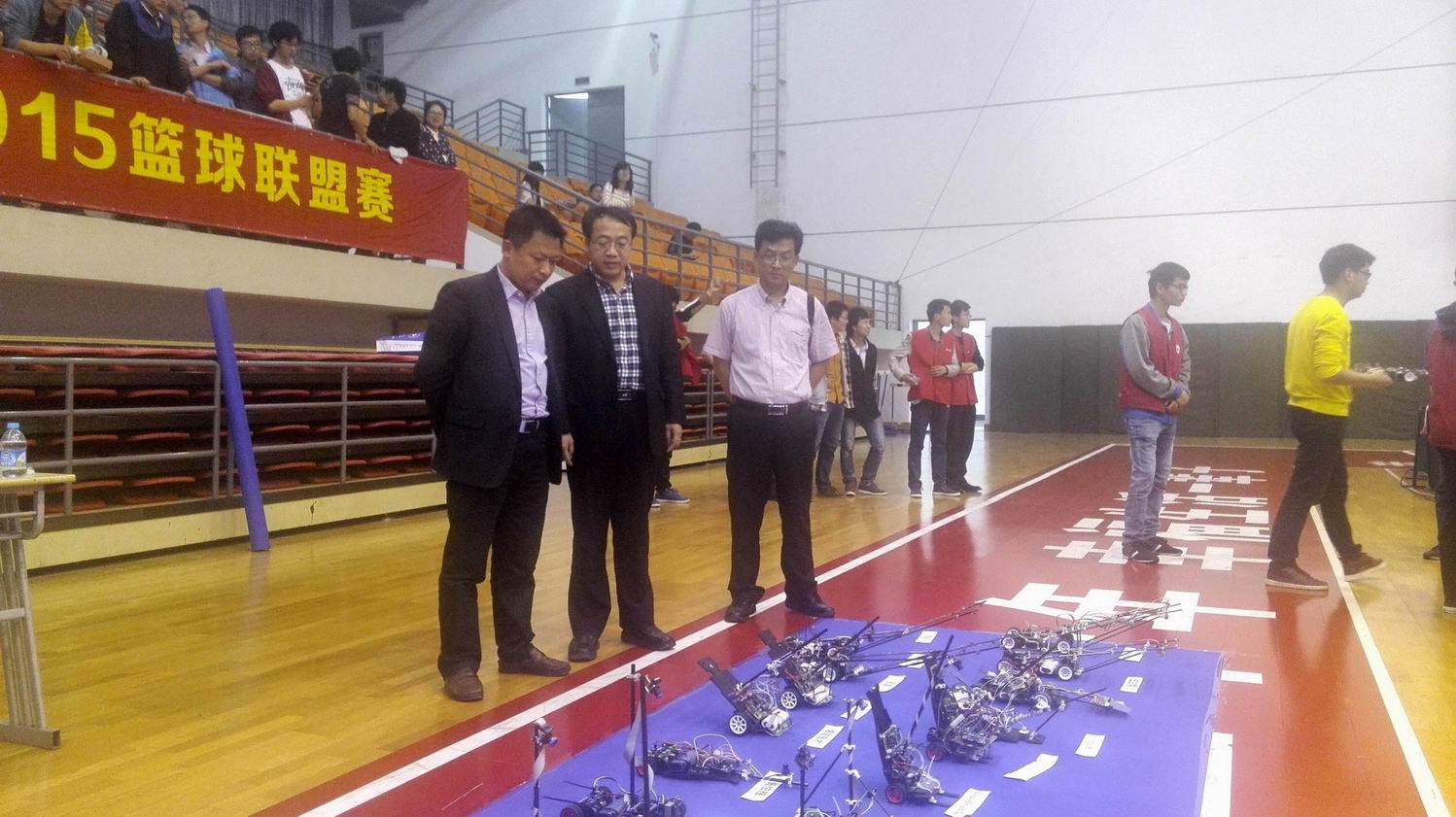 4月25日,3044永利集团副经理曾国辉副教授,方志军教授一同来到校体育馆,观看第十届老员工飞思卡尔智能车竞赛3044永利集团校内选拔赛,对参加指导的教师和参赛的员工进行了慰问,并对今后参赛工作做了指导。