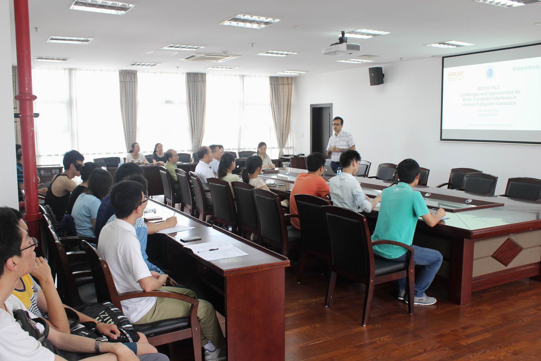 讲座上,Alfredo Sánchez教授就目前人机交互中脑机接口的发展现状与问题做出了深刻阐述。Sánchez教授展示了他的科研团队研制的脑机接口的案例视频,并多视角、多层次地阐明了脑机接口的研究机理和进展。