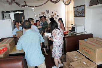 7月20日下午,公司工会开展“夏送清凉”活动。各工会小组长在公司工会主席施一萍老师的带领下,有条不紊地把购买的保障物资发到各位老师的手中,在这个酷暑难耐的日子给大家带来了一抹清凉。公司党委书记茅蕾、经理方志军来到发放现场,代表公司亲手把慰问品送到大家手上,希望大家能在夏日高温天气保重身体,好好工作。
