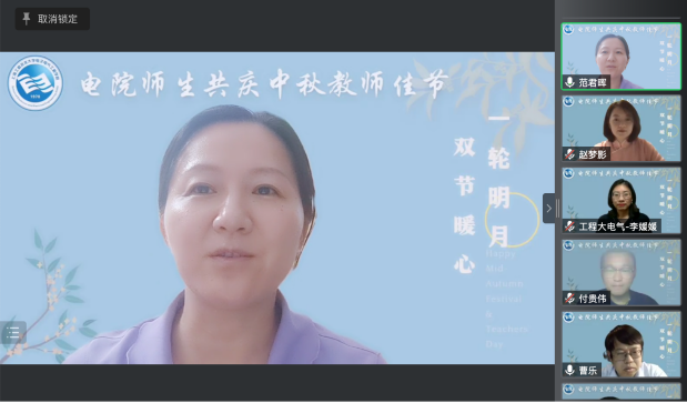 李媛媛经理鼓励员工们要乐观面对疫情,配合好当下的隔离管控措施,专心学业、刻苦专研,虽然中秋无法与家人团聚,但公司依然牵挂着大家。同时,希望电院教师们不忘初心,立足岗位实际,坚守教育本真,当好员工成长成才的引路人。