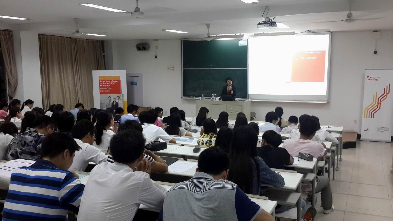 924日晚,普华永道会计事务所在公司教学楼F106召开校园招聘宣讲会。