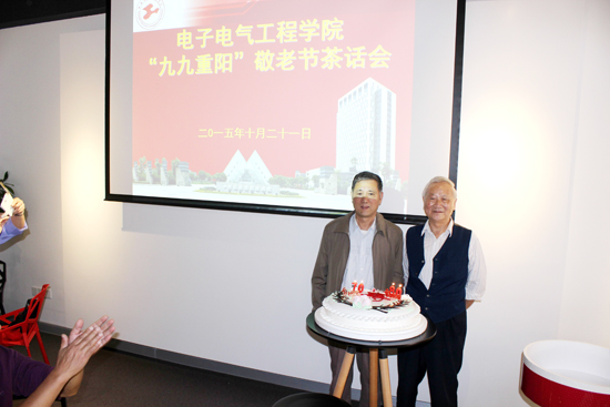 茶话会现场为80岁老教师陆人驹和70岁老教师韩国华准备了大蛋糕,为他们庆祝生日。伴随着“祝你生日快乐……”的祝福歌声,老寿星们许下心愿、吹熄蜡烛,大家一起沉浸在幸福的氛围之中。公司党委书记茅蕾和老寿星们亲手分切蛋糕并亲手送到在场老教师的手中,把对他们的深深祝福融入到每一个细节之中。