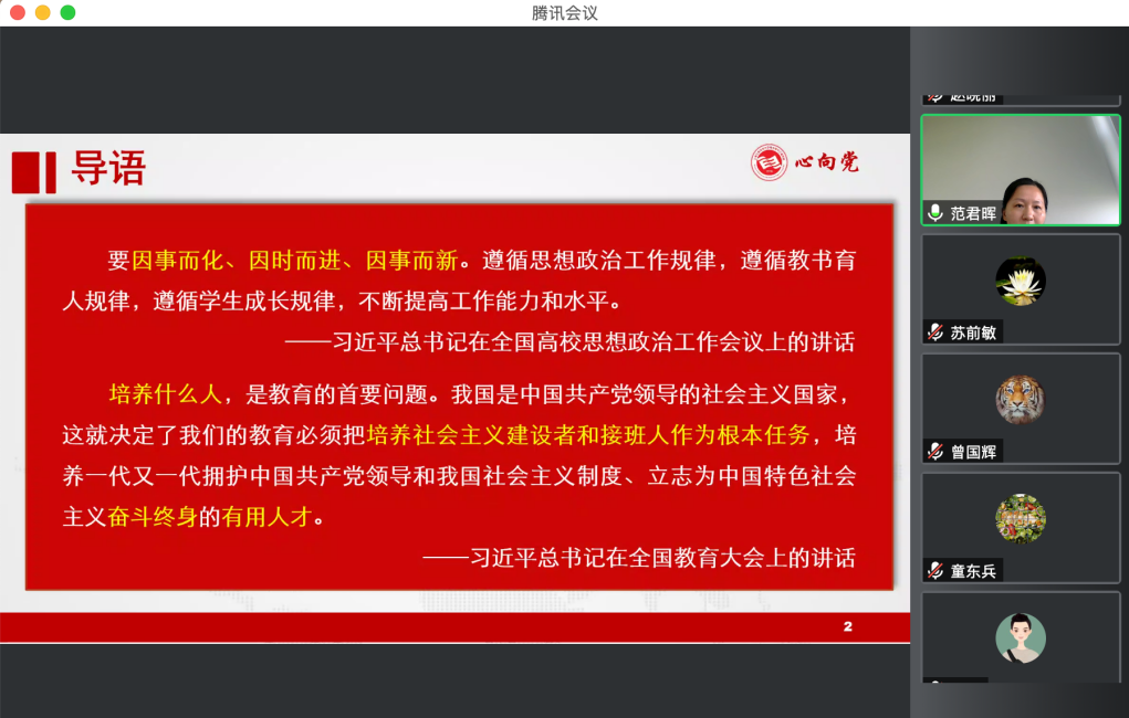 范君晖书记提出导师在日常教学工作中要有对员工进行政治引领和专业成才的方法,要处理好:导与学、“鱼”与“渔”的关系。并向大家介绍了新时代师德规范、师德示范处理的相关规定以及师德警示教育。举例多个教育部通报的师德失范例子,希望大家引以为戒,珍惜这个和平的年代,专注立德树人,引领员工成长成才,做到真正的“学高为师,身正为范”。