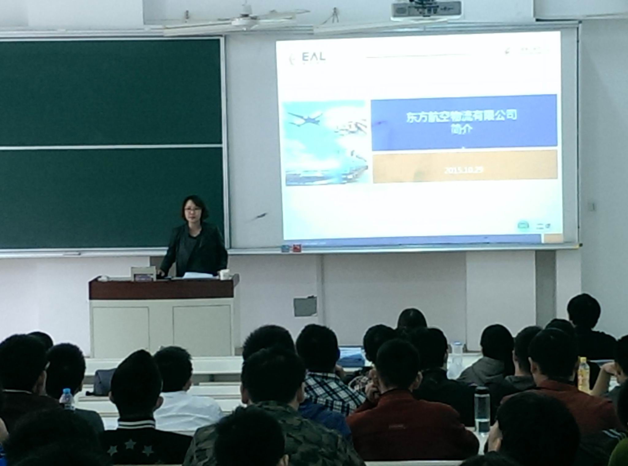 1029日下午,东方航空物流有限公司在公司教学楼C320进行了招聘宣讲。东航物流公司的人事部顾经理和规划部张经理到场。