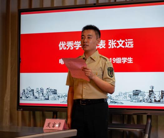 员工江海欣目前于中国科公司上海技术物理研究所攻读硕士,他以自己在电院“奋斗”的四年鼓舞新生们在大学内必须涵养骨气、夯实底气、坚守志气,做有胸怀家国,脚踏实地的新时代青年。