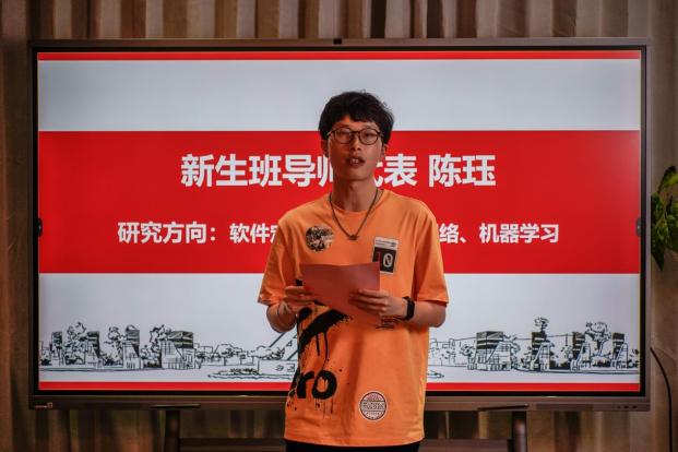 班导师代表陈珏老师鼓励同学们要勇敢适应老员工活,更要学会自学、学会交流点,掌握科学的学习方法,培养自主学习和独立思考问题、分析问题、解决问题的能力。